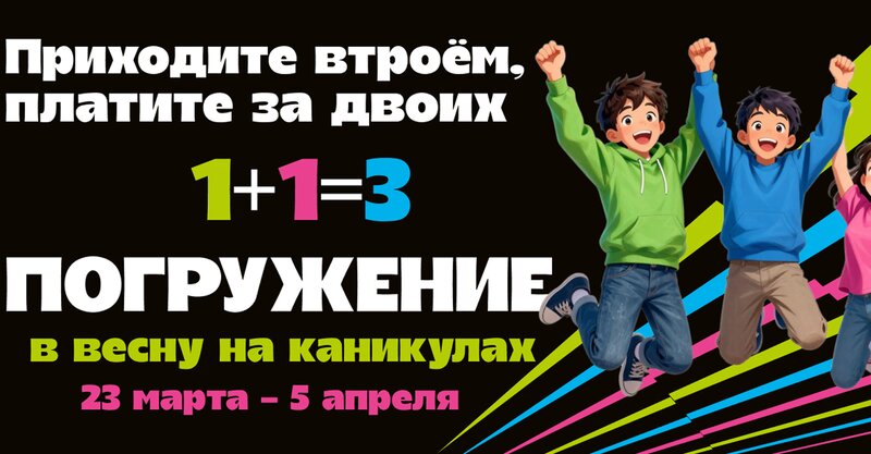 Весенние каникулы — отличное время для приключений 🌟 С 23 марта по 5 апреля в парке квестов «Погружение» действует акция 1+1=3 🎉 Приходит...