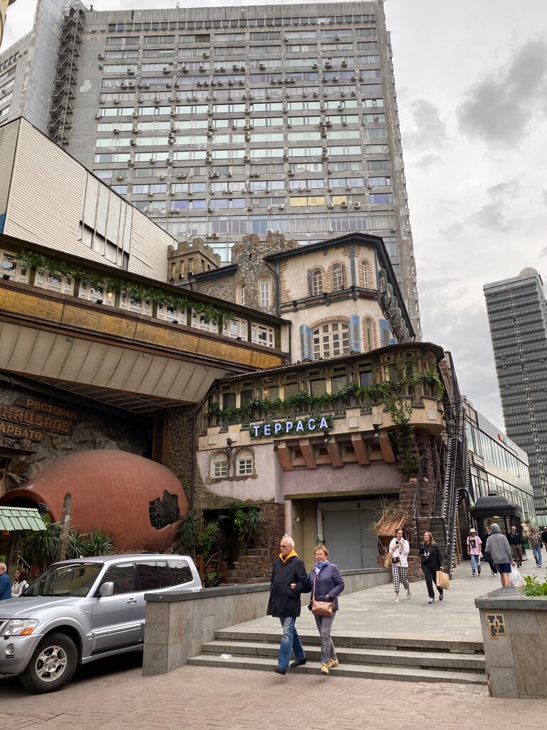Вчера с подругой были в грузинском ресторане. Сказочно выглядит снаружи здание, сразу атмосферное настроение появляется, как будто не в Москве находишься. Очень понравился весь персонал ненавязчивые гостеприимные чувствуют настроение каждого клиента любят и уважают своих гостей. Еда понравилась очень, особенно салат из хрустящих баклажанов в Москве я нигде лучше не пробовала, моя подруга такого же мнения. Шашлык из баранины шикарный. Бокал п/ сладкого вина зачет! Хочу выделить официанта Тимура и хостес или администратора приятную красивую девушку, которая встречала нас и помогала выбрать посадочное место. Десерт Наполеон и кофе были вкусные. Из минусов немного задержали десерт, кофе был выпит уже. Однако на этот момент в ресторане была 100% посадка гостей. Благодарим за приятный атмосферный вечер. P.S. Вид из окна с высоты на улицу города это что-то!