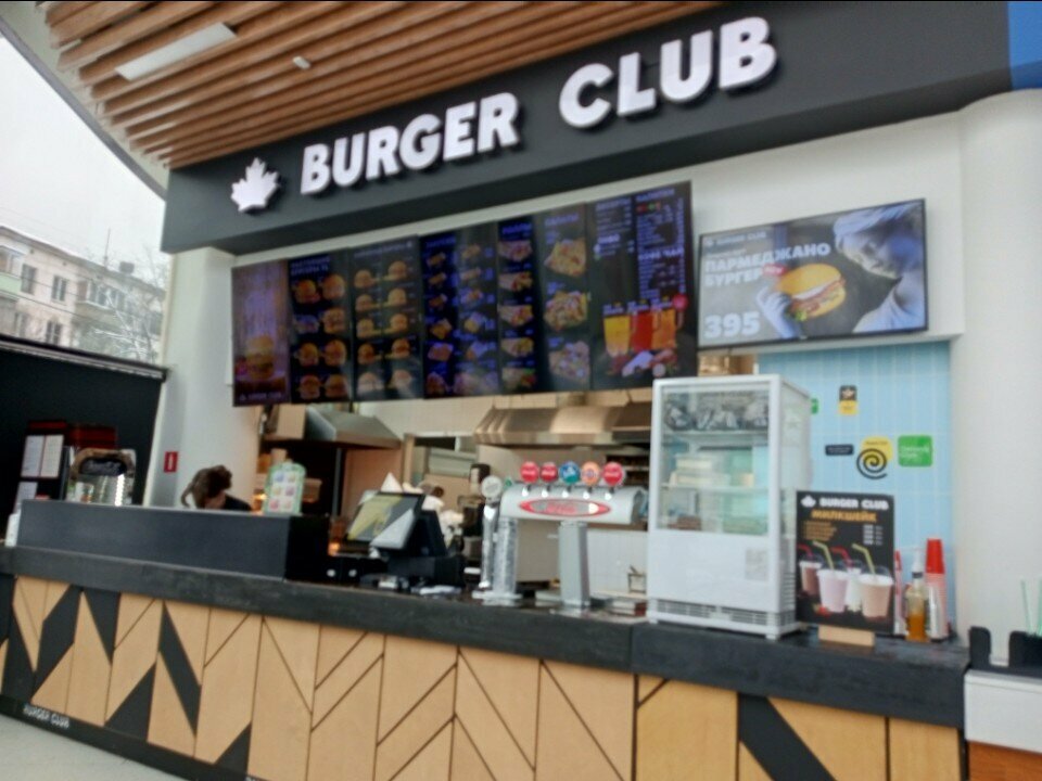 Огромное меню, быстрое обслуживание, приятные цены. Вежливый персонал. Аккуратно, чисто, и вкусно. Рекомендую заходить в заведение Burger club и наслаждаться вкусными гамбургерами, пиццей, картошкой и многими другими боюдами.
