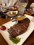 Невероятные стейки ! Приятный персонал , стабильно раз в месяц приезжаем сюда ужинать семьей , ценник стандарт на семью из троих стейки салата и напитки где то в районе 10 тысяч , обстановка очень уютная 🫶жаль нет детского меню