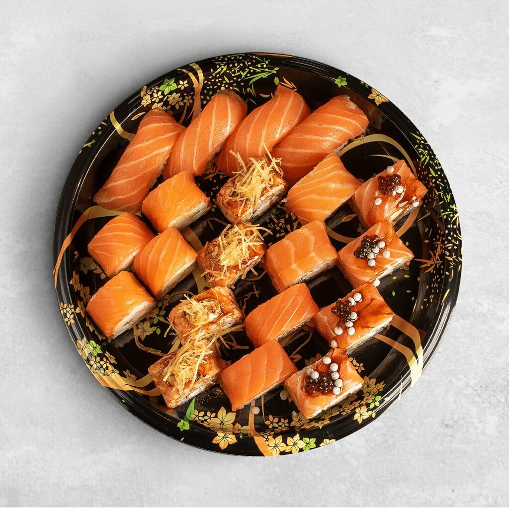 Рис, креветка темпура, норвежский лосось, сыр креметте, авокадо, нори (4 шт.)