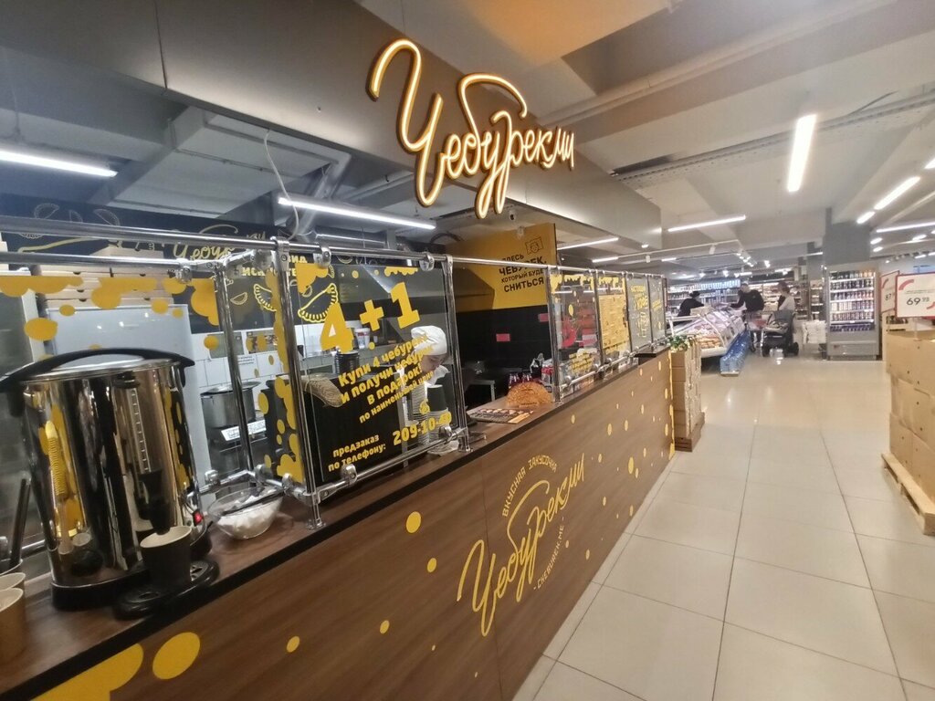 Расположение удобное, есть много мест для приёма пищи. Приготовили чебуреки довольно быстро, но они совсем не вкусные. Люди за соседним столиком сидели, тоже самое говорили друг другу. Ещё и упаковку с чебуреком положили на поднос, так что чебурек задевает поднос. Не очень приятно. Впринцепе, если голоден поесть можно.