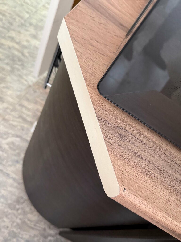 Заказывали столешницу и фартук. Столешница пришла совсем другой ширины, ощущение что было на складе, то и положили. Спил угла бежевый не в цвет. Проблему не решили. Менеджеры компании ни в чем не заинтересованы, ответили не знают чья ошибка, могут поменять, но ждать неделю или более. Как я должна быть неделю без кухни? Сьездили сами отпилили на другую фирму.