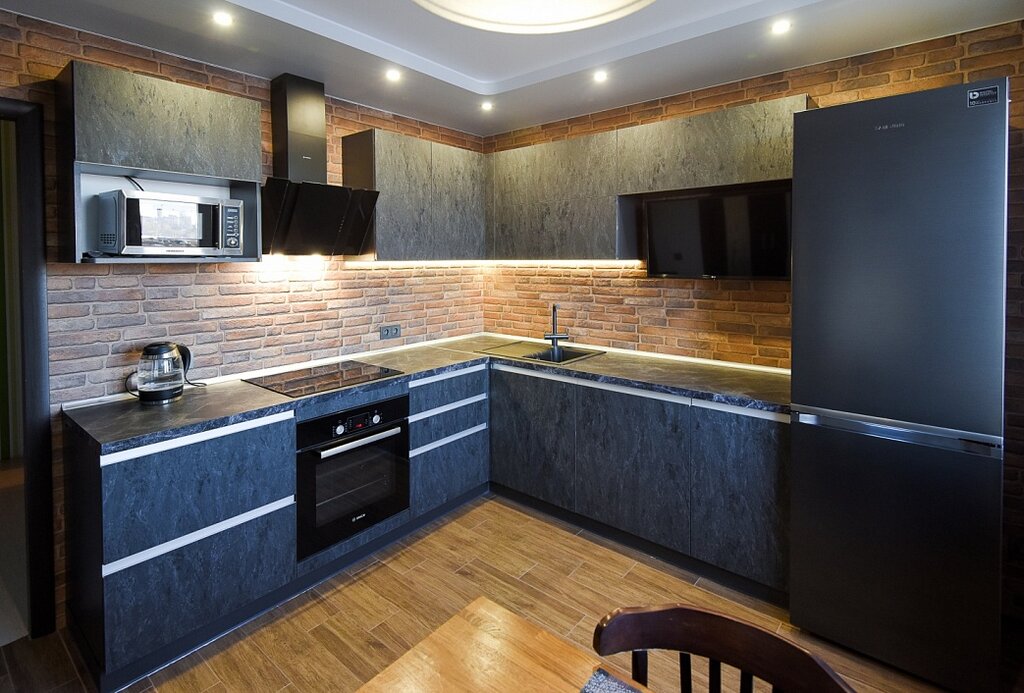 Модель кухни «ЭБОНИ» может быть представлена в ламинированном МДФ и ЛДСП. Выбирайте цвет фасада, который идеально подойдёт к вашему интерьеру кухни. Дизайнеры салона «Шеф Кухни» разработают для Вас 3D дизайн-проект бесплатно!