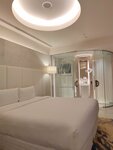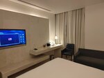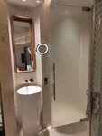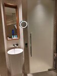 I booked this hotel for a 12-hour transfer in Oman in February 2026. I had very pleasant impressions - a nice room, a comfortable mattress, high-quality bed linen and towels. It's just perfect for relaxing between flights. The room is quiet. There is gel, shampoo, toothpaste and a brush. Touch control of lighting and air conditioning (if someone has not figured out how to turn off the air conditioner - temperature settings and shutdown - to the left of the bed above the bedside table. There is a kettle, a tea set, 2 bottles of water of 0.6 liters each. I had a view of airplanes and mountains, very nice. The curtains are light-proof, the sun does not interfere with sleep. The Wi-Fi was working fine. For sockets, I need an adapter, I just had it with me from Malaysia. But there is a USB charging socket near the kettle. Very beautiful and interesting bathroom decoration design! The price is about the same as for air hotels, you can't call it low, but it's worth it. I recommend.