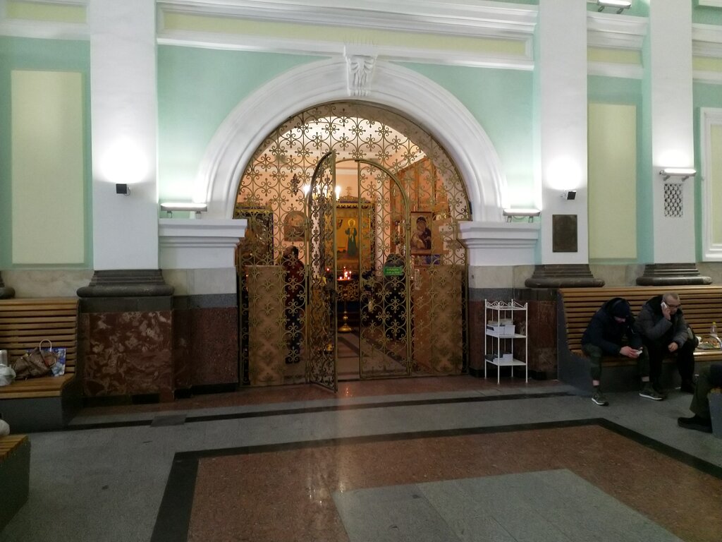 Действительно, часовня в здании Вокзала. Икона Матроны московской с мощами. Есть церковная лавка. Только вход из зала ожидания, а там кого только нет...