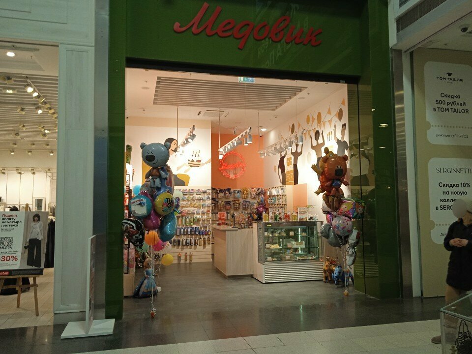 Очень маленький, но уютный магазинчик. Вкусные тортики и орешки Очень яркий, много побрекушек для дня рождения и шарики Очень классный, мне нравится