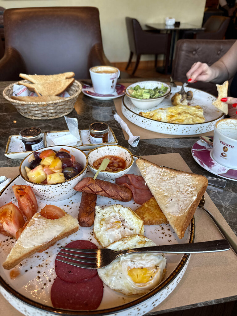 Hello everyone. My wife and I went to this place for breakfast because of the reviews and didn't regret it (thanks to those who took the trouble to write them) the portions here are so huge that we could barely fit them in ourselves and the cooking is amazing