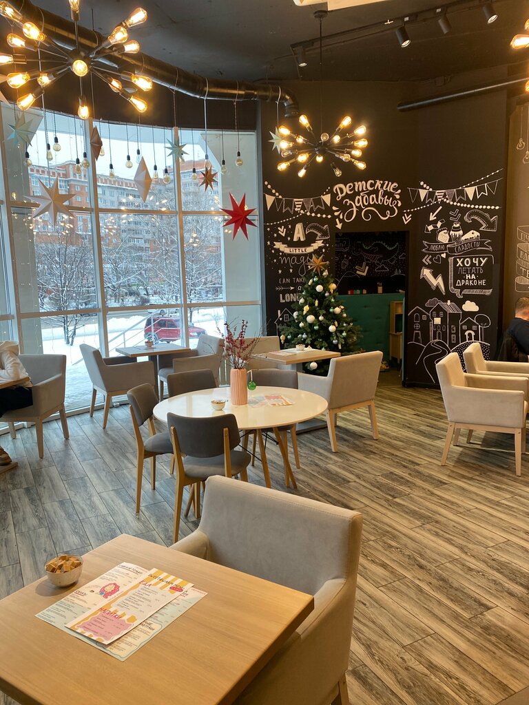 Хорошее заведение. Приятная атмосфера. Можно попить чай/кофе (в том числе на альтернативном молоке) с разными вкусности, а также покушать. Есть небольшая детская игровая комната. Туалет достаточно чистый.