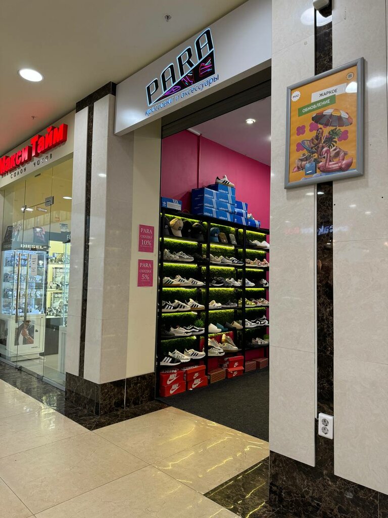 Хочу выразить огромную благодарность магазину PARA за отличный выбор и превосходное обслуживание! Я была приятно удивлена разнообразием моделей – от классических до самых последних новинок. Нашла идеальную пару кроссовок для тренировок. Качество материалов и изготовления видно. Консультант Никита был очень внимателен и терпелив, помог мне примерить несколько пар и дал полезные советы. Процесс покупки прошел быстро и комфортно. Однозначно буду советовать этот магазин друзьям!"