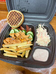 Горячий характер Кавказа: цыплёнок, овощи, маинованый лук, фри и фирменный соус в каждом кусочке.