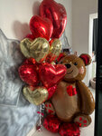 Акция! В состав набора входит большой фольгированный мишка, высотой 121 см, большое, 78 см сердце с индивидуальной надписью (надпись можно заказать свою), фонтан из 9 фольгированных сердец и 8 гелиевых шаров на потолок. Акция действительна при оп...