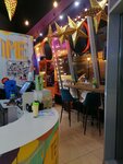 Яркий интерьр, уютный и тёплый, разнообразный выбор напитков, очень приятная бариста. Много интересных картинок и фото кейпоп артистов :) прикольная музыка