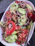 Pleasant interior, huge portions, a large meal was brought and a giant salad of tomatoes and cucumbers, we ate together) excellent homemade wine, a glass of 5 lari. The prices are low . Pleasant service, thank you!!