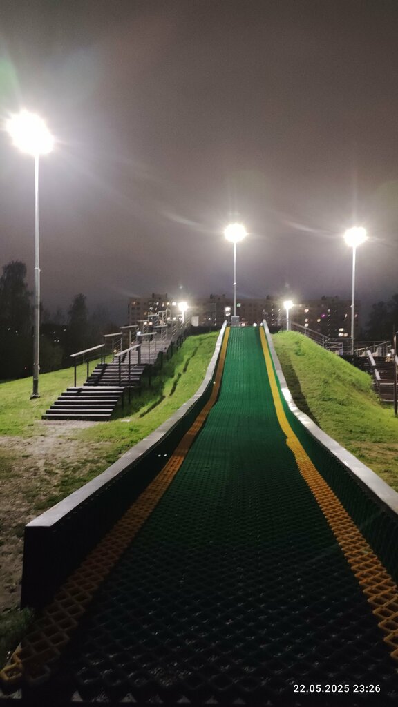 Горка классная, после того как её облагородили ходим туда чаще. Удобные лестницы для подъёма, и 3 спуска с разными наклоном,и соответственно скорость разная, Вообще место хорошее, можно погулять, воздух свежий. Минусы: Нет парковки, всего машин на 20 сделана,но это очень мало для такого пространства. И нет кофейни,очень хочется взять что-то горячее попить))(Идея для стартапа)