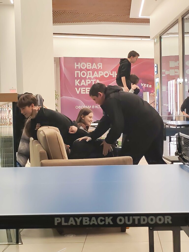 Пока жены с детьми гуляют по магазинам, мы с друзьями играем в настольный теннис, классное место.
