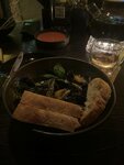 Был в данном заведении в первый раз , начнём с самого начала. После захода в здание первое впечатление, что очень атмосферное заведение , смесь средневековья и современного искусства вызвало восторг! Встретила приятная девушка и проводила до столика. Вызов официанта осуществляется по кнопке , удобная вещь , но вот с выбором блюд было не очень удобно , переходить по qr и листать ленту вниз , некоторые фотки отсутствовали , но это не помещало выбору. Первым делом принесли чай , заказали 900мл с подогревом , интересной идеей было поставить под низ свечку , чай всегда был горячий, приятный аромат молочного улуна вызвал удовольствие , вкус был насыщенный , терпкость появлялась по мере заваривания, ну тут на любителя, кто как любит , тот так и контролирует. Плюсом хочу добавить , что можно попросить кипяток и доливать в заварку, так как было ее много. Оценка 10/10 Вторым и третим блюдом принесли лапшу Wok, с курицей вопросов нет, нежно сливочный вкус, отлично сочетающейся с курочкой , ещё с обжаренными овощами и грибами муэр дал насладиться данным блюдом, с креветкой понравилось меньше , эта заезженная классика, креветки с кисло-сладким соусом были не очень, отдельно креветки с этим соусом может и отлично, но вот в лапшу не выписывалось и перебивало вкус, ей бы подошёл тот же сливочно-грибной как и в курице, ну тоже вкусовщина. Оценка курице 10/10, креветки 7/10. Следом была тарелка мидий, тоже в приятно сливочном соусом, я не любитель мидий , но мне понравилось, отдельный респект за хлеб, очень вкусный, имел приятную корочку по бокам и оставался мягким в центре. Оценка всего блюда 10/10. Далее тар тар, блюдо подаётся в виде тапаса, как закуска, честно скажу был разочарован, тар тар брал продегустировать мясо, но его не почувствовал, перебивал вкус не спелый авокадо с фруктами, будто ел остатки компота , но задумка неплохая, доработать бы и вкус мяса поставить на первый план, было бы здорово, а так пока не очень. Оценка 4/10, плюс балл за цену. Ну и на финал пицца Прошуто , тесто мое уважение , правильно приготовленное тесто , сразу добавляет +100 очков к вкусу , начинки было достаточно, но соус был не яркий, не связывал блюдо, а как будто разделял ингредиенты по разным ступеням, ну в целом не плохо, но с томатным соусом надо поэкспериментировать. Оценка 8/10. Спасибо поварам наелся и персоналу, очень внимательные, все прибирали и интересовались по поводу вкуса блюд , спасибо большое.