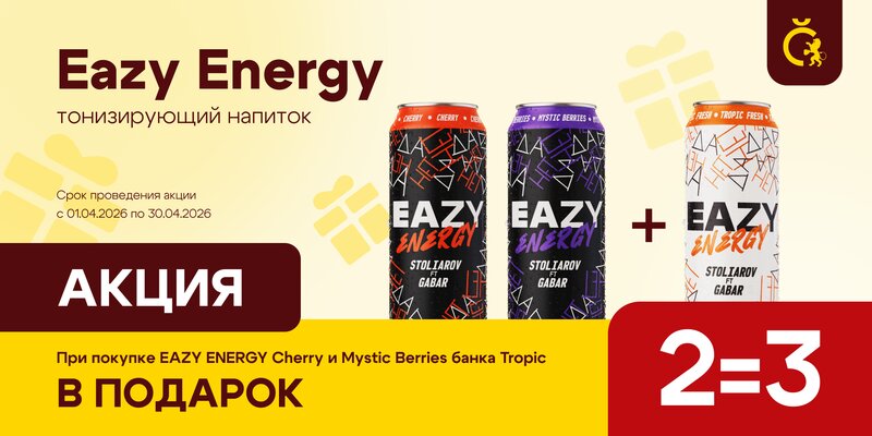 Акция 2 = 3 на Eazy Energy Запаситесь энергией на апрель выгодно! Купите банку Eazy Energy Cherry и банку Eazy Energy Mystic Berries и полу...