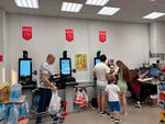 В магазине можно быстро найти необходимый товар, т. к. здесь хорошее зональное деление продуктов. Также несколько касс самообслуживания, что позволяет экономить время и не создаëт очереди. В магазине чисто, следят за выкладкой товара. По ценнику и акциям всё стандартно. По молочке "Томмолоко" не всегда вечером можно купить кефир, быстро раскупают днём.