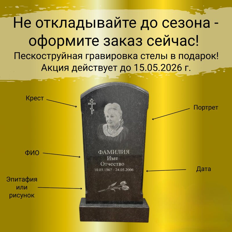 Обратилась в компанию заранее, ещё до начала сезона, в январе, и ни разу не пожалела. Заказывала мемориальный комплекс, из гранита, на данный момент всё уже изготовлено. Хочу поблагодарить менеджера Ирину: всегда была на связи, подробно отвечала на вопросы и присылала фото готовых изделий. Очень приятно, когда держат в курсе процесса. Теперь ждём период установки. После того как всё будет установлено, обязательно дополню отзыв.