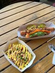 Сразу скажу - единственный минус за то, что не выдают столовые приборы, салфетки. (Это подтяните!) В остальном очень вкусная забегаловка, цены приемлимые для своих порций, мы одним хот догом прям наелись. Взяли самый базовый хот дог - датский. Приготовили прям быстро, даже не успели занять свои места и присесть)) Персонал - парень вежливый, общался нормально. Сосиски в них вполне себе вкусные. Кто-то писал, что на вкус как-будто они самые дешевые, но такого я сказать не могу. Есть необычный вкус в них, но я думаю потому, что в куриной сосиске есть действительно куриное филе. Соуса вкусные, булочка супер мягкая, вообще ничего сухого не было. Картошка фри порция тоже очень приличная, хорошо приготовленная прям как надо. Я могу посоветовать вам тут покушать, оно действительно того стоит. Мы остались прям в очень хороших впечатлениях!