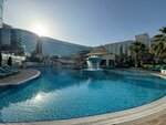 It's a great hotel to wait out the transfer time. If your flight is postponed to a later time, you must go to the Reception with the documents and inform about this postponement, first confirming this transfer with the airline representatives at the reception, and then next to the hotel representatives at the same counter so that the room is extended. The hotel is located a 10-minute drive from the airport. There are free shuttle buses to and from the airport every 15 minutes. The restaurant provides three meals a day. Monotonous, but delicious. The hotel is large and spacious. There is a swimming pool on site. Linen change daily. I would especially like to mention the gym. It's gorgeous for a hotel. In addition to a full range of exercise equipment, multi-tilt bench presses and the entire range of dumbbells, there is a cardio zone, a crossfit zone and even a separate small gym with a punching bag. The entrance to the fitness area is from the pool at the door of the Spa area. Walk past the Spa reception. Then take the elevator. The Gym button. I will attach a photo of the hall below. If you have enough time, I also recommend taking a two-hour sightseeing tour of Dubai, which costs $35 per person and lasts for two hours. On this tour, you will be taken to the main nearby attractions, the bus will stop for a photo, show the rest right along the way and briefly tell you about them. Information about the tour at the entrance to the hotel and on the left in the tent, a photo of which will also be attached. The tour bus will start from the hotel entrance and return to the entrance two hours later. The guide is in touch with the hotel. I liked that the hotel is responsible for you and your departure, as it is interested in continuing your journey. The reception will offer to wake you up by ringing the phone in the room. In fact, this hotel is the Emirates airline that you should trust! Have a good rest and no flight delays.