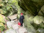 Очень красивое и удивительное место в Горном парке. Все эти выдолбленные ступеньки органично вписываются в природный ландшафт, в дождь или при таянии снега бежит ручей- водопад. Прогулка по ущельяю несложная, только в сырую погоду ступеньки скользкие и не везде есть поручни для подъёма. В любое время здесь живописно, наскальные рисунки и надписи из прошлого.