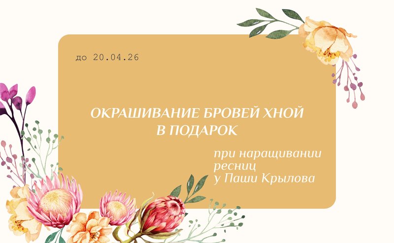 Только до 20.04 запишитесь на наращивание ресниц любого объема к Паше Крылову и получите окрашивание бровей хной стоимостью 1000 руб в подар...