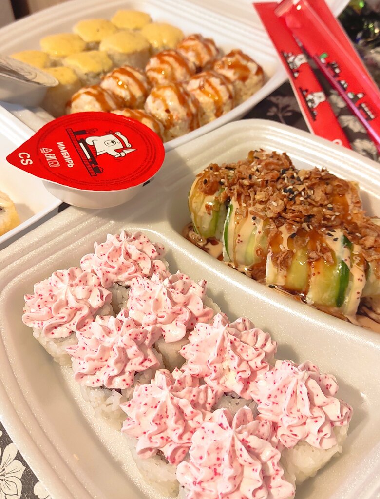 Роллы вкусные и довольно большие. Для нашего города это редкость. Приятные на вкус. При самовывозе персонал общался вежливо и задержки по заказу не было. В честь 8 марта положили маску для лица и фирменный магнитик. Для меня вы стали одним из фаворитов роллов в нашем городе.