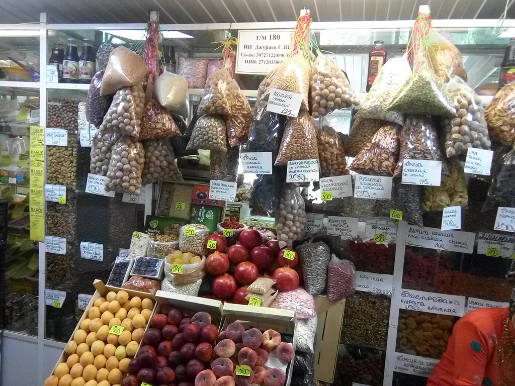 Тесновато,побольше помещение нужно,а так вроде норм,все свежее,овощи и фрукты имеют товарный вид,расфасовка товара разная и можно так же набрать самим