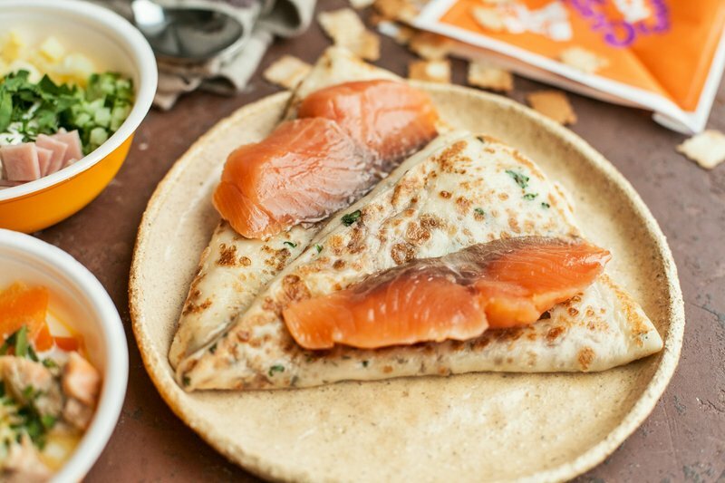 Блин с сёмгой, сметаной, сыром и зеленью