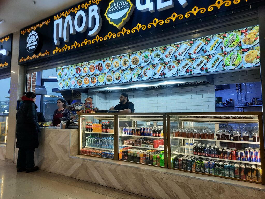 Ачичук делают из пластмассовых безвкусных помидоров, плов часто бывает с жилами вместо мяса и кусками жира. Лепешки постоянно вчерашние. Это все лучше мака, но без лишней нужды ходить сюда не стоит, проще через дорогу в фуд корт сходить. 3 из 5 И кассир принимает деньги, потом этими же перчатками кладет вам ложку, причем берет ее за ту часть, которая в рот попадает и этими же перчатками кладет лепешку. Вот это самый большой минус