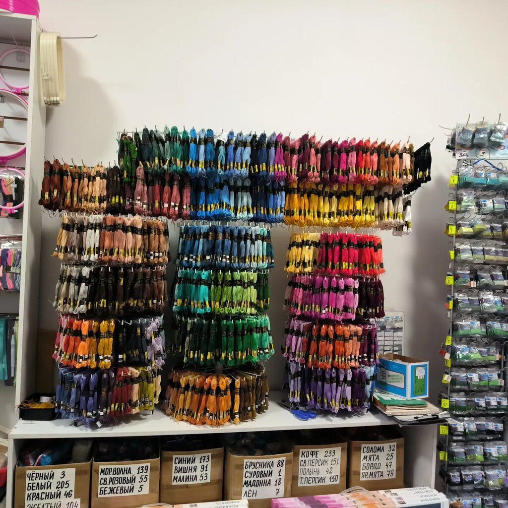 A convenient store, there is everything for needlework. Note to moms, everything that girls need for labor lessons is there