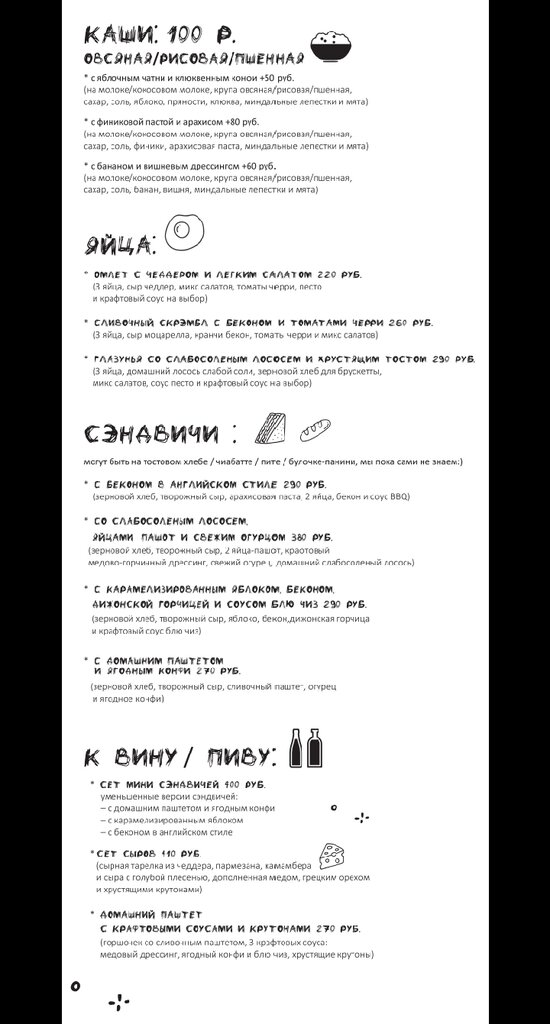 Заходили пообедать. Очень интересный интерьер, пока ждёшь заказ можно поразглядывать. Еда вкусная. Брали скрамбл с беконом и салатоми пасту с курицей и грибами. Вкусно, понравилось. Порция объёмная, сытно. Цена приемлемая. С напитками на двоих около 1200. Обслуживание приятное. Единственный минус - не было никаких деспотов в наличии. Но надеюсь, это разовая история)