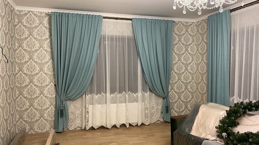 Подобрали шторы и тюль. Подшили. Все чётко по размеру. Рекомендую.