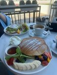 It's a good cafe, we went there 2 times for breakfast. The portions are large, the dishes are good. The only thing was, all the outdoor furniture was stained with bird poop and the waitresses weren't very efficient.