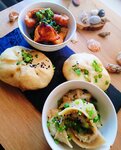 Кусочек Азии в тарелке. Человек становится добрее после приема вкусной пищи. А если она еще и приготовлена с любовью - прекрасно. ❤️ Насмотревшись корейских дорам, и поняв, что кроме покупного рамена я не могу продолжить просмотр серий, было решено попробовать блюда из кафе "Митер Норис". Меню обширное, тут и рамен, и токпоки, рис и лапша. Глаза разбегаются, живот урчит. А напитков - немоверное количество. Но, решено было взять на пробу гёдза и фирменное пянсе. 🥟 Гёдза (пельмешки родом из Китая) , нежное тесто , с разными начинками, приготовленное на пару. Принято решение взять с говядиной. Хорошее сочетание начинки и теста. Всё в меру по специям. Количество начинки радует. Тесто тонкое. Прекрасный перекус. Украшены пельмешки мелко рубленным зеленым луком. Что придаёт пикантность. Второе блюдо, тоже гёдза 🥟 но обжаренные во фритюре. Здесь их название карикари гёдза. Выбор начинки пал на курицу. Из начинок для пельмешек три вида: курица, ребро свинины и говядина. По поводу жареных пельменей: также хорошее соотношение специй в мясе. Хрустящее тесто за счет фритюра. По сравнению с паровыми, это прям закуска такая потяжелее. Может даже к пенному напитку. Третье блюдо - фирменное пянсе. Это мягкая булочка из рисовой муки (наверно) а внутри капуста кимчи и свинина. И это просто в самое сердце 🏹. Острота кимчи не перебивает свинину. Оба ингредиента заигрывают друг с другом, что позволяет насладиться поистине азиатской едой. Я взяла 2 булочки. Посыпаны кунжутом и лучком. Прекрасный обед , да под сериал - идеальный выходной. В меню еще есть корндоги . Которые я обязательно попробую. Благодарю поваров за качественные позиции в меню. Приду снова.