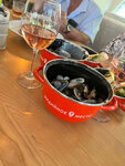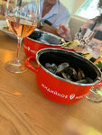 5 звёзд, а вообще ресторан заслуживает 6.0. Отличное место. Резервации столиков нет, но персонал готов помочь и найти то место, которое вас устраивает. Много мест во дворике, на улице. В нашем случае нам нашли отличное место-купе в галерее с видом на красивый пейзаж. Кухня выше всяких похвал. Всё вкусно и обстоятельно организовано. Из горячих закусок - изумительный тёплый салат из баклажанов с хрустящей корочкой: нежные овощи в панировке с кисло-сладким соусом и кремом васаби. Мидии в сырно-сливочном соусе подаются в кастрюльке вместе с тремя кусочками багета (это вариация, а не багет в классическом понимании). Соуса много (по вкусу он между соусами бешамель и холландез). Едят мидии руками, поэтому к блюду подаются несколько пар перчаток, в которых полагается есть мидии, на столе также много влажных салфеток. Вместе с блюдом на подносе лежит детальное описание, как есть мидии. Хороший выбор вин, мы к мидиям взяли Мускат Бельбек. Замечательно подошло. Отмечу работу персонала. Быстрая подача. Как уже отметила, официант нашёл отличное место, дал хорошую рекомендацию по выбору блюд, оперативно уносил посуду. Никаких минусов, одни плюсы. Чек на двоих - мидии, салат, вино - 4 тыс. с хвостиком.