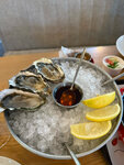 Изысканное блюдо из дальневосточных устриц. Каждая устрица подается с долькой свежего лимона и изысканным соусом, подчеркивающим их уникальный вкус