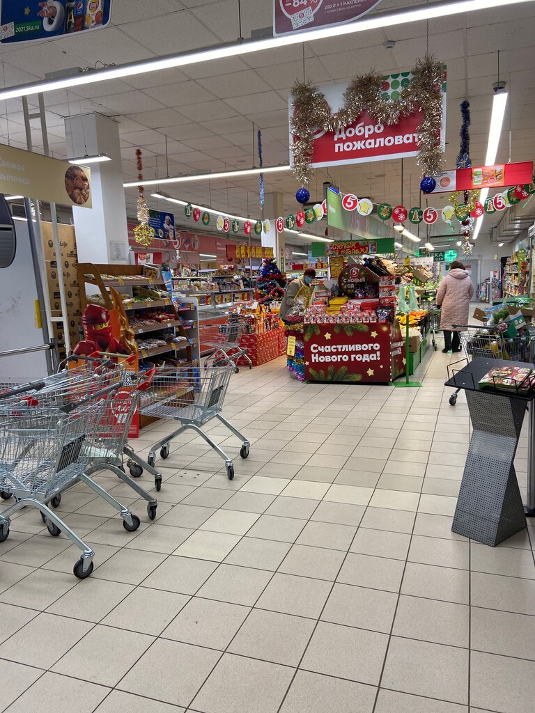 Отличный магазин, большой ассортимент, молодой и вежливый персонал. Есть кофемашина, свежая выпечка, кассы самообслуживания 🫶🏻 Находится рядом с домом.
