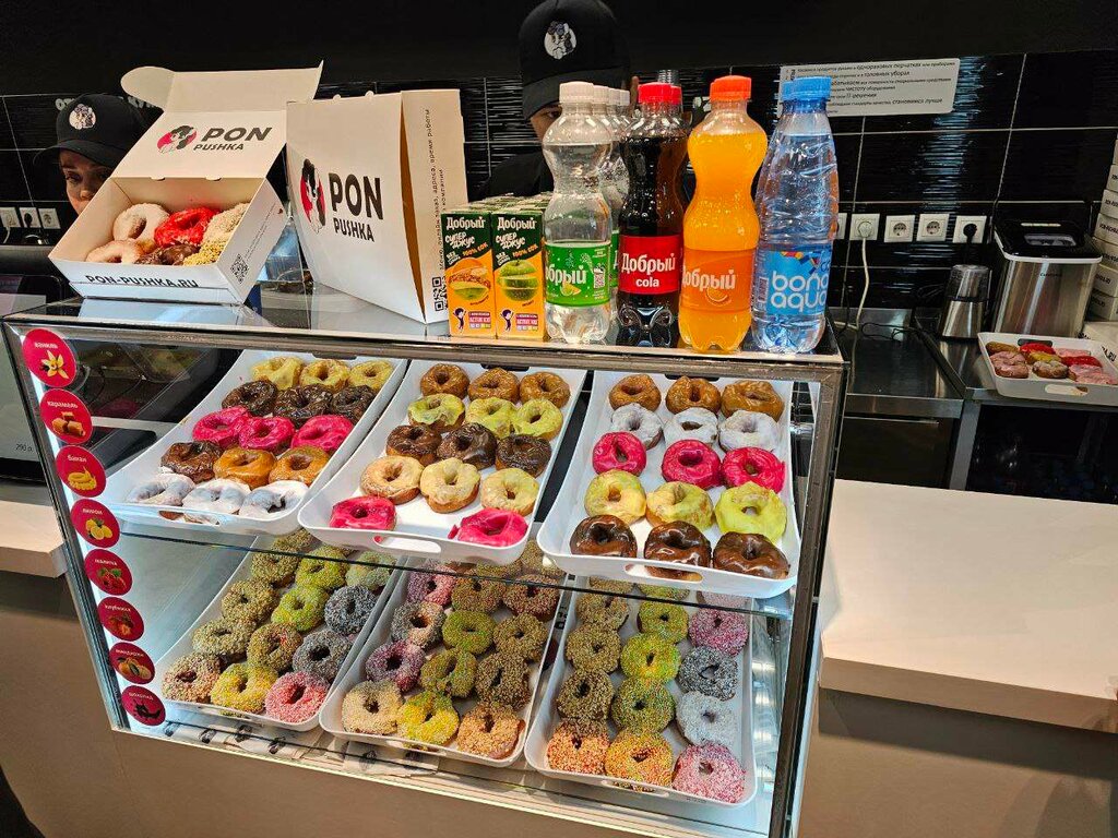 Вчера после работы зашла в это замечательное место Pon-Pushka, просто была очень давольна тем что коллектив дружный ,рабочий без всякий нареканиий к друг другу , особенно хочу выделить там была девушка в платке стояла у кассы и одновременно делала пончики , и один парень сделал мне вкусное кофе ,очень вкусно все и мне все понравилось ушла с хорошим позитивом и настроением . Всем советую приходить только туда м.Курская , ул. Земляной вал 29.