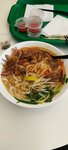 Заказала фо-тай. Перед заказом спросила состав. Девушка сказала, что он с креветкой, но на выходе оказалось, что это тот же фо-бо, только мега острый. Есть его невозможно, обжигает всё. Ещё и цены в меню отличаются от стоимости. В меню цена 370, а пробили 430