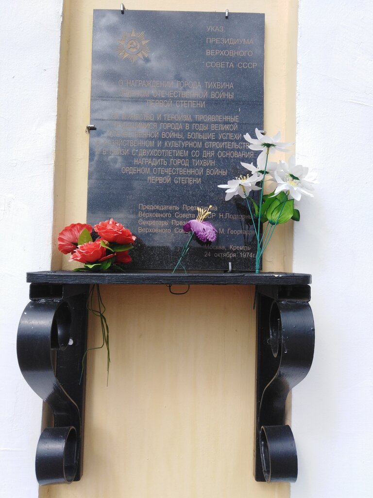 Memorial plaque, foundation stone В честь награждения Тихвина Орденом Отечественной войны I степени, Tikhvin, photo