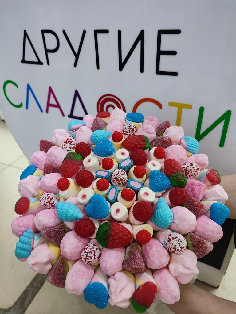 Очень красивое оформление сладостей для подарков, сами сладости свежие, зефир нежный, воздушный, мармелад очень вкусный! Девочки продавцы помогают с выбором, очень хороший магазин, рекомендую всем, как для детей так и для взрослых, можно найти необычные сладости для любого праздника!