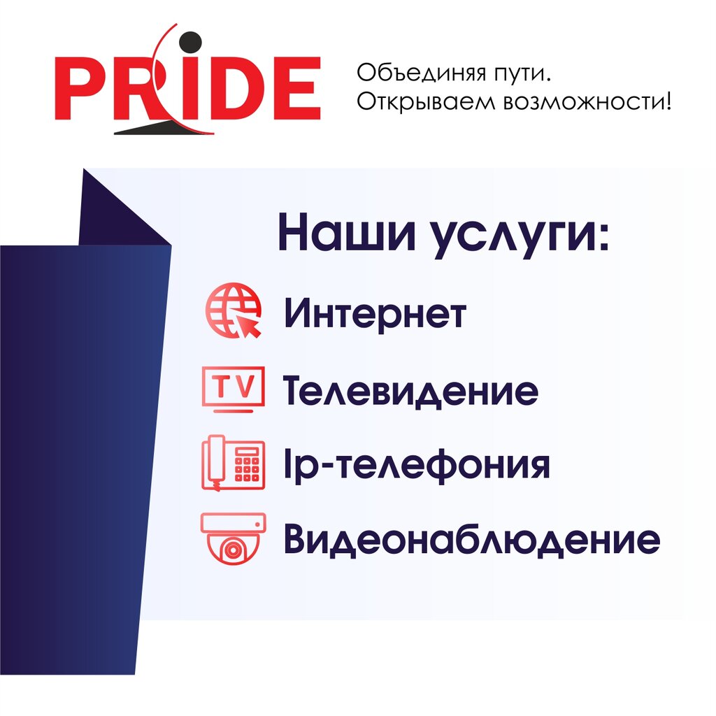 Подключите домашний Интернет до 100 Мбит/сек и интерактивное телевидение с опцией Timeshift - более 180 цифровых телеканалов на любой вкус и возраст от Интернет - провайдера Прайд. При оплате услуги за 12 месяцев, стоимость составит 620 руб/мес.