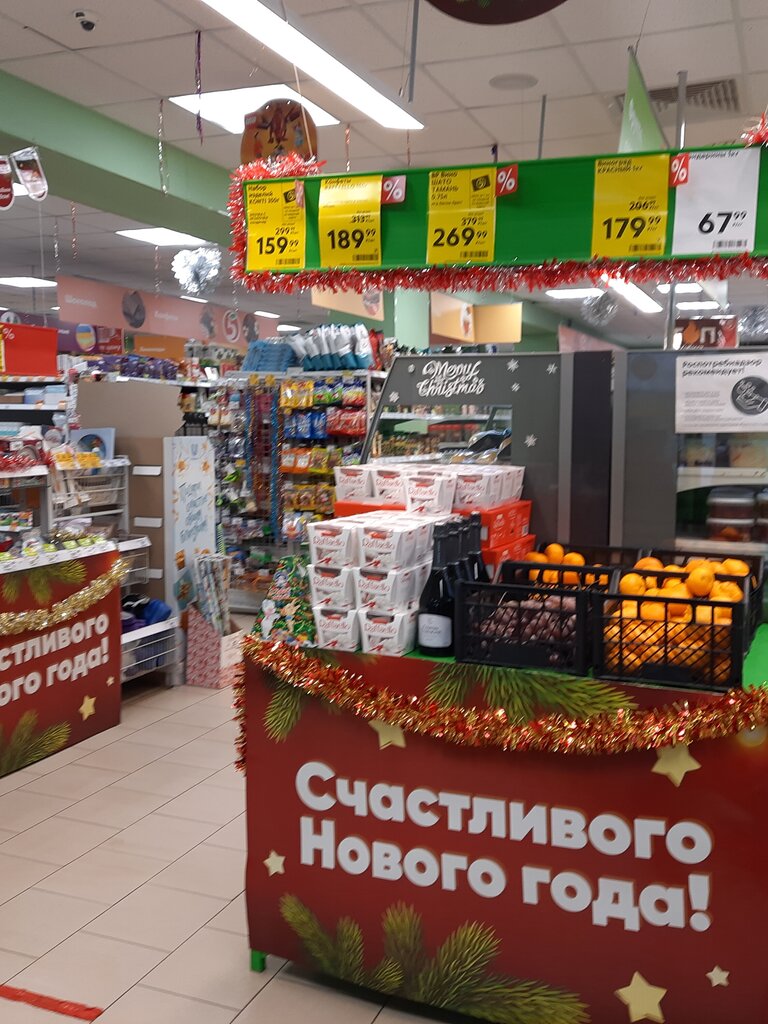 Прекрассный коллектив,видно девочки трудятся стараются,всегда свежие продукты,подскажут где что по чем,найдут любой интересующий товар,всегда в магазине чисто.Зал оформили к новому году очень красиво.Очень жду когда поставят хорошую музыку.