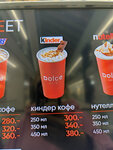 горячий кофейный напиток с шоколадками Kinder (не сироп) со вкусом молочного шоколада; дополнительный шот эспрессо +40 руб.; NEW декаф (кофе без кофеина) +50 руб.; альтернативное молоко +60 руб.