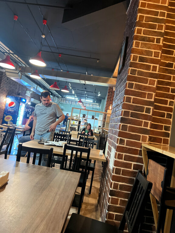 Кафе в бизнес центре, 1й этаж. Наверное, нужно приходить в обеденное время, покормят нормально :) Между 9 и 10 часами зашла - очень бедный выбор, варёное яйцо в скорлупе посыпано солью, сосиски, омлеты, почти всё жареное. Салат дать отказались, потому что "это на обед", видимо, тут комплексные обеды для сотрудников. Ачма безвкусная, творога не чувствуется... Разочарована.