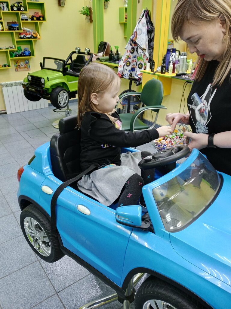 Замечательная обстановка, прекрасные профессионалы-парикмахеры, болтают с ребятишками. Обстановка для детей прям супер. Отличная мотивация детям-сидеть в кресле-машинке, поиграть в уголке детском-когда стрижка закончится. Парковка есть у входа в детскую парикмахерскую