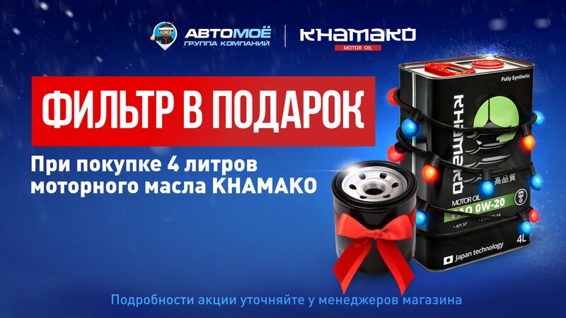 При покупке моторного масла KHAMAKO фильтр бренда АВТОМОЁ в подарок! Подробности уточняйте у менеджеров магазина.